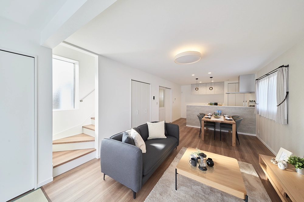 LDKを通るリビング階段で自然とコミュニケーションの時間が生まれます。