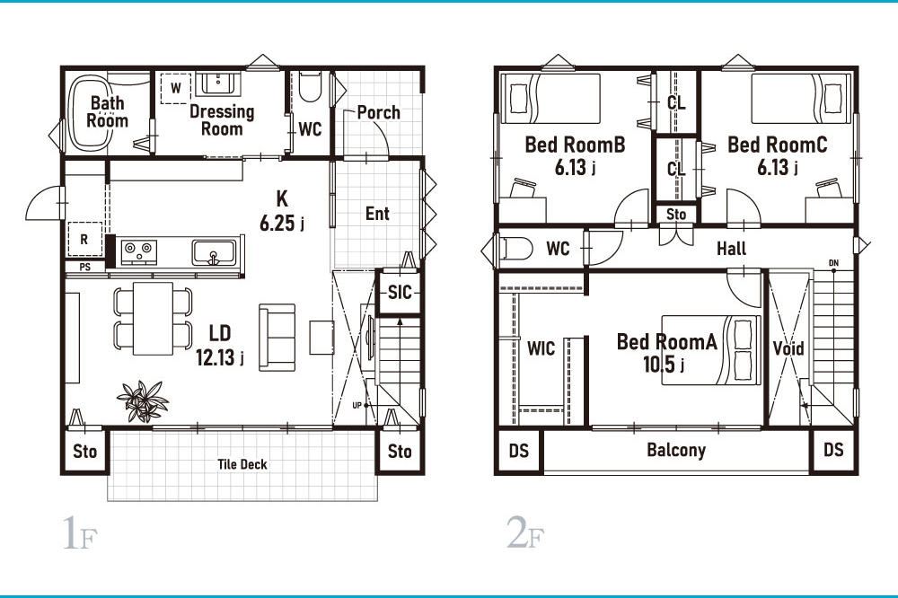 3LDK+パントリー+S.I.C+W.I.C+タイルデッキ