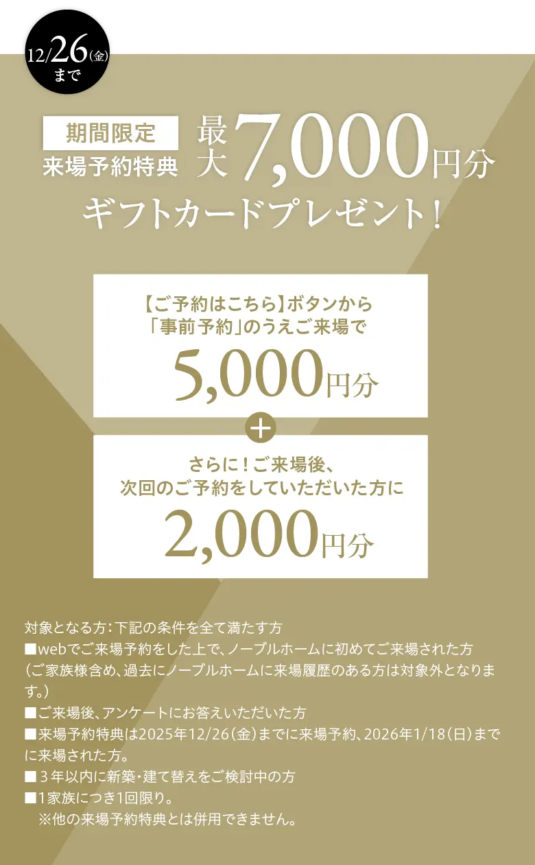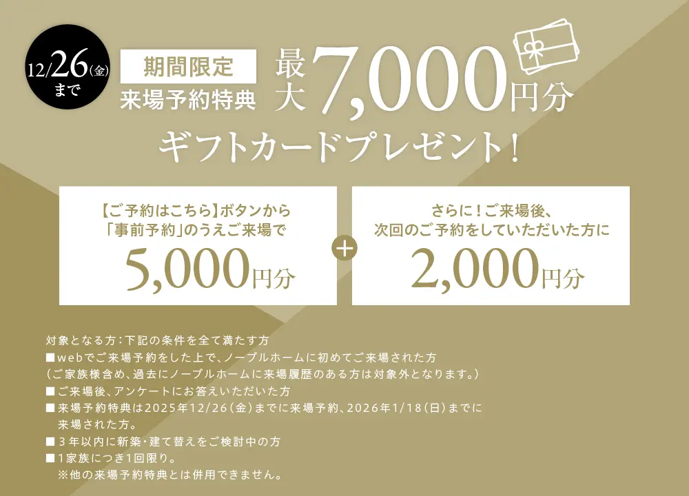 今なら、ご予約の上ご来場いただいた方にギフトカードをプレゼントしておりますので、この機会にぜひご来店ください。
