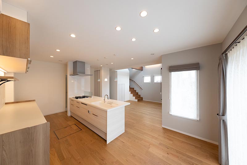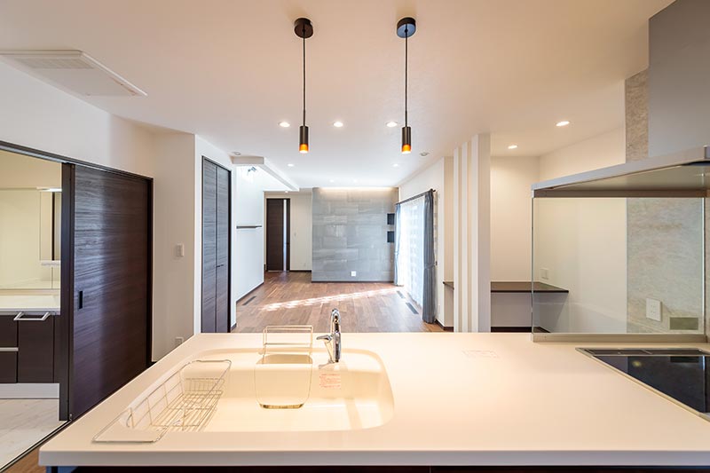 担当営業さんの説明が分かりやすく、親身になってくれたことと、建物の標準性能が優れている点に納得しノーブルホームを選びました。特にこだわったのはキッチンや洗面所の水回り設備です。明るい家にしたく、断熱性が良いので思い切って吹き抜けも採用しました。こだわりが詰まった住まいが完成しました。
