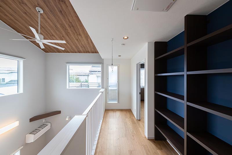 もっともこだわったのはスキップフロアと半地下スペースです。半地下スペースは家族みんなで休日に映画を見たり、漫画を読んだり、ゲームをしたりする空間です。