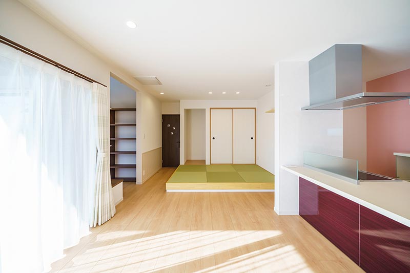最もこだわったのは小上がりの和室スペースです。リビング・キッチンから見える位置にし、ゆっくりと仏壇に手を合わせられる空間にしました。