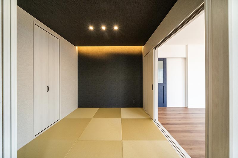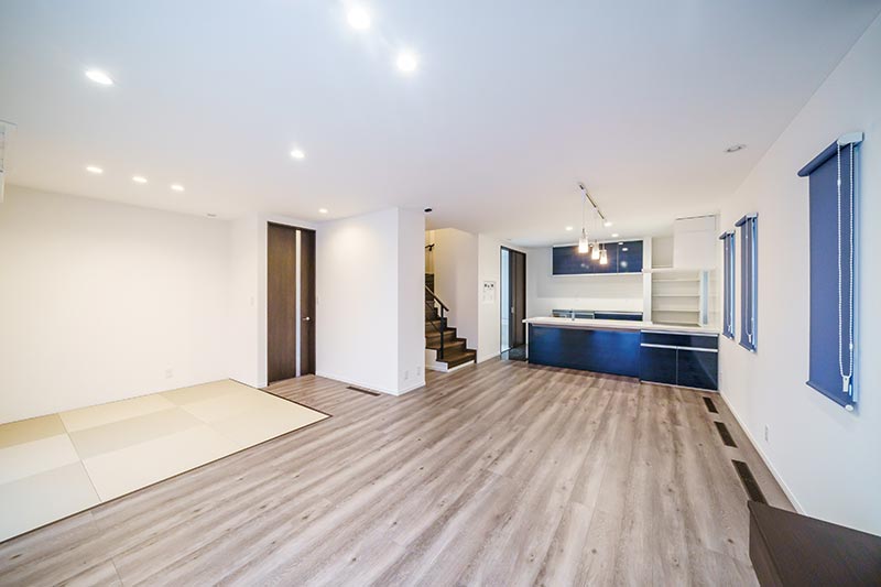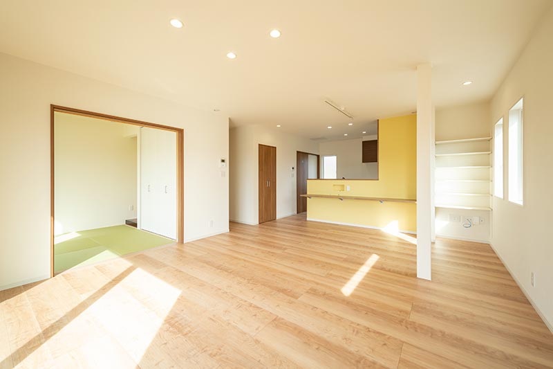 和室も広いリビング空間をつくるために戸を付けずオープンにしました。