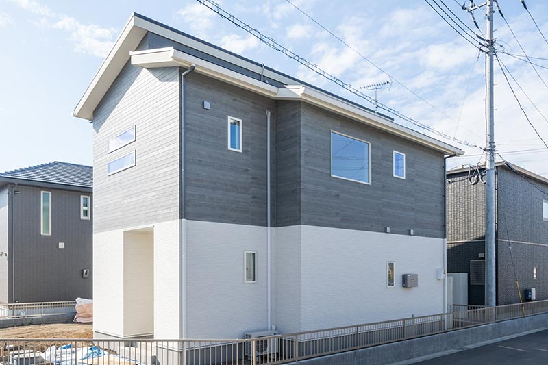 性能面では災害対策とエコのために太陽光発電システムを取り入れ、メンテナンスが楽な外壁材Fe-geを採用しました。