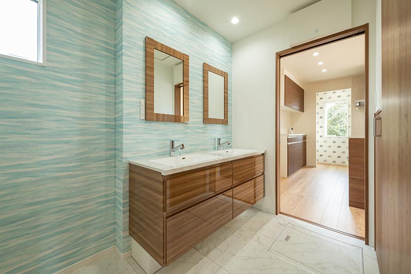 洗面台は2ボール洗面台を採用し忙しい朝でもストレスなく準備できるように選びました。