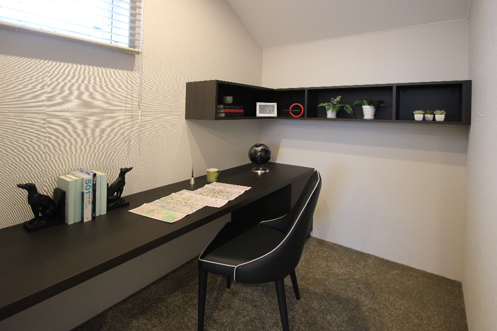 テレワークなど、一人で集中したい時に使える書斎スペース。やるべきことを効率よく終えられるので、家族と過ごす時間をもっとゆったり楽しめます。 -