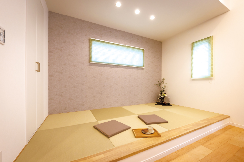 “もう一つのくつろぎ空間”として設けた2階和室。家族の団欒や子どもの遊び場、趣味に没頭する時間など、柔軟に使えるマルチスペースです。 -