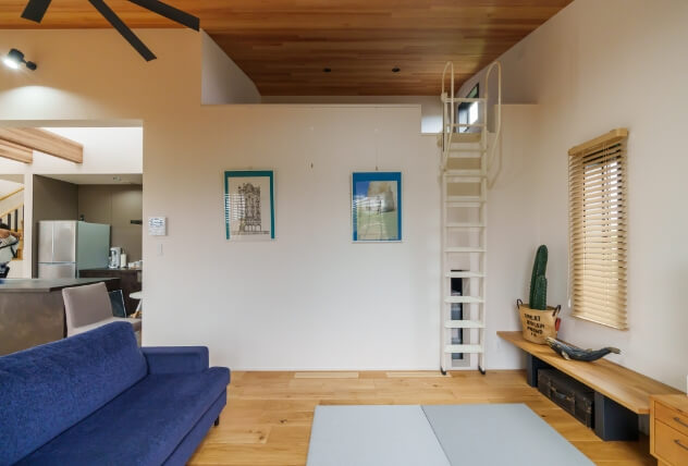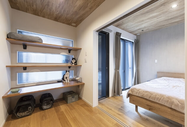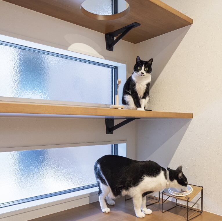 - 高いところが大好きな猫たちが自由に歩き回れる小屋裏収納。キッチンやダイニング、リビングからその姿を見る事ができます!