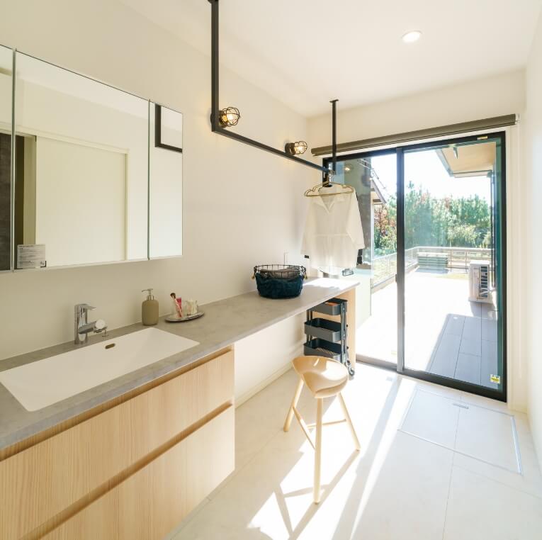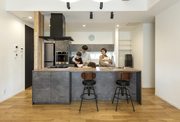 - デザインはもちろん暮らしやすさにもこだわりました。家事がしやすいように動線の工夫や収納スペースを多く配置、一年中快適に過ごせるようにエアシス(全館空調)を採用。とても快適に過ごせています。