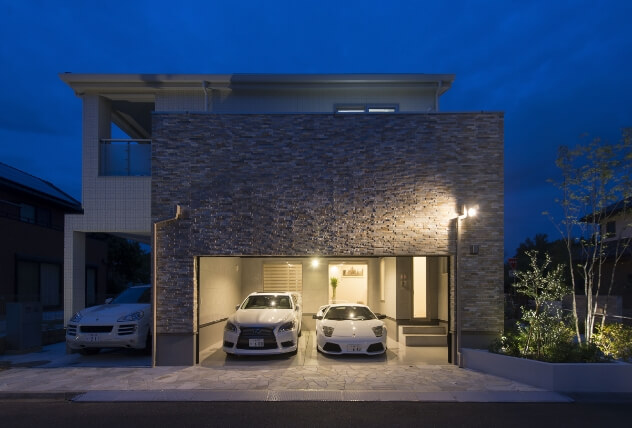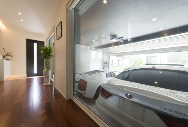 エントランスから、いつでも愛車を眺められるインナーガレージのある住まい。