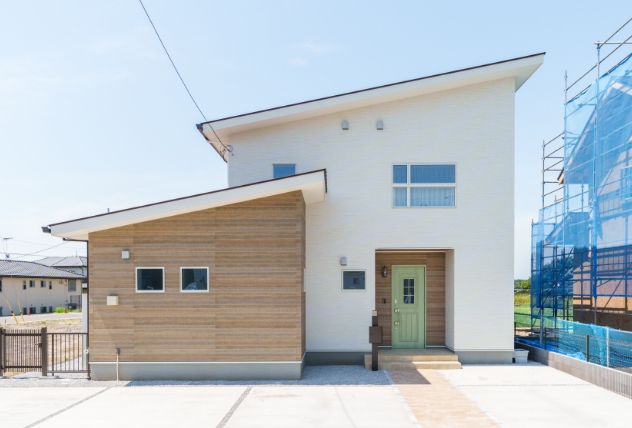 - 他とは違う感じの家を作りたいと言ったところ、カナエルの1.5階プランを勧められました。 カナエルは規格型住宅で、設備などを1から決めていくものではなく選んで決めていくものですが、選ぶと一言で言っても外壁材・手すり・屋根など外観だけでもそれぞれ選べるものが多く、好きな外観ができました。また、間取りも126プランから選べるだけでなく、趣味のスペースを設けたいと言ったところリビングの一角に書斎スペースを作ってもらえました。※ ※間取りの調整は程度によりご対応できます。