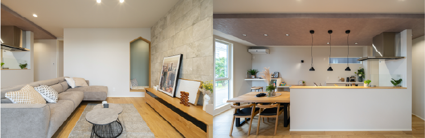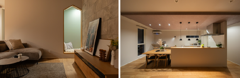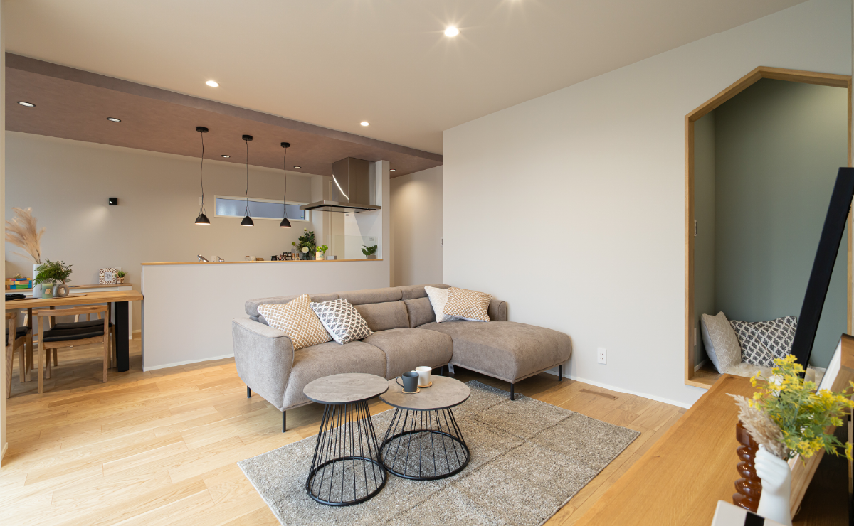 そんな想いを叶える家が完成しました。広々としたLDKには、家族が集うリビングに加え、ヌックやワークスペースなど、気分に合わせて選べる居場所をゾーニング。