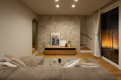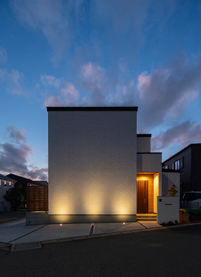 空間と照明で魅せるデザイン性の高い外観と、玄関のアイキャッチとなる間接照明が、あなたの帰りを優しく迎えます。それぞれの時間を大切にしながら、共に豊かに暮らす。