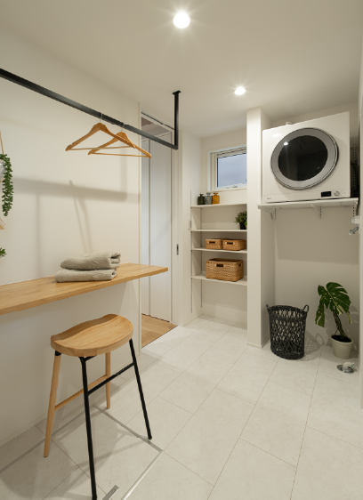 また、帰宅後すぐに手洗いができる動線や、キッチン脇のワークスペースなど、子どもの成長を見守り、賢く育むための工夫も随所に。