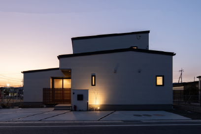 主寝室を1階に設け、平屋のようにも暮らせる1.5階建て。