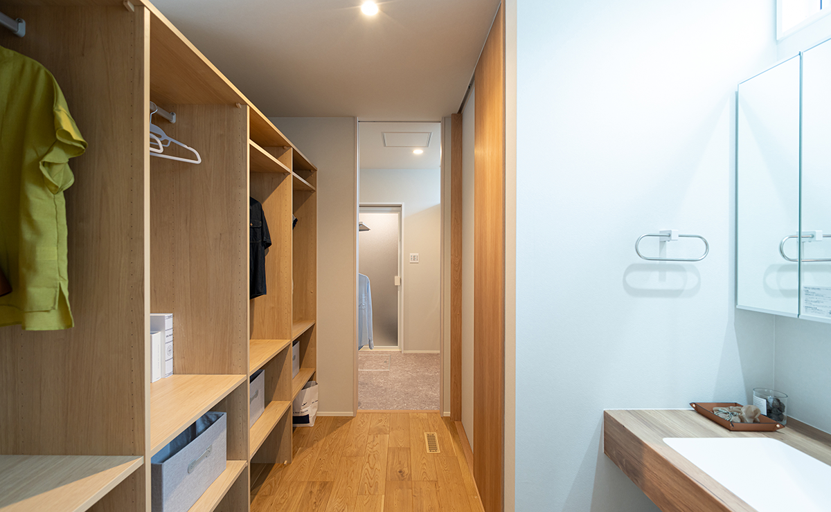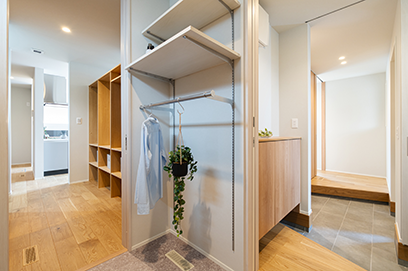 シューズクロークにはじまり、パントリー、ファミリークローク、そして小屋裏収納。使い勝手の良い収納が揃っています。