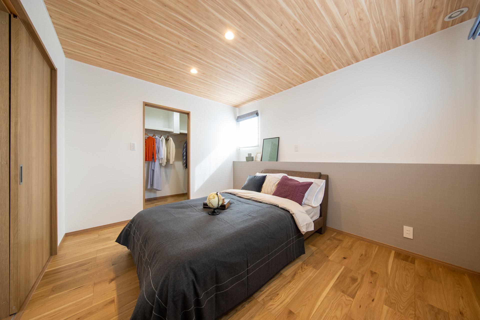 輸入風のインテリアと勾配天井の開放感が際立つ平屋