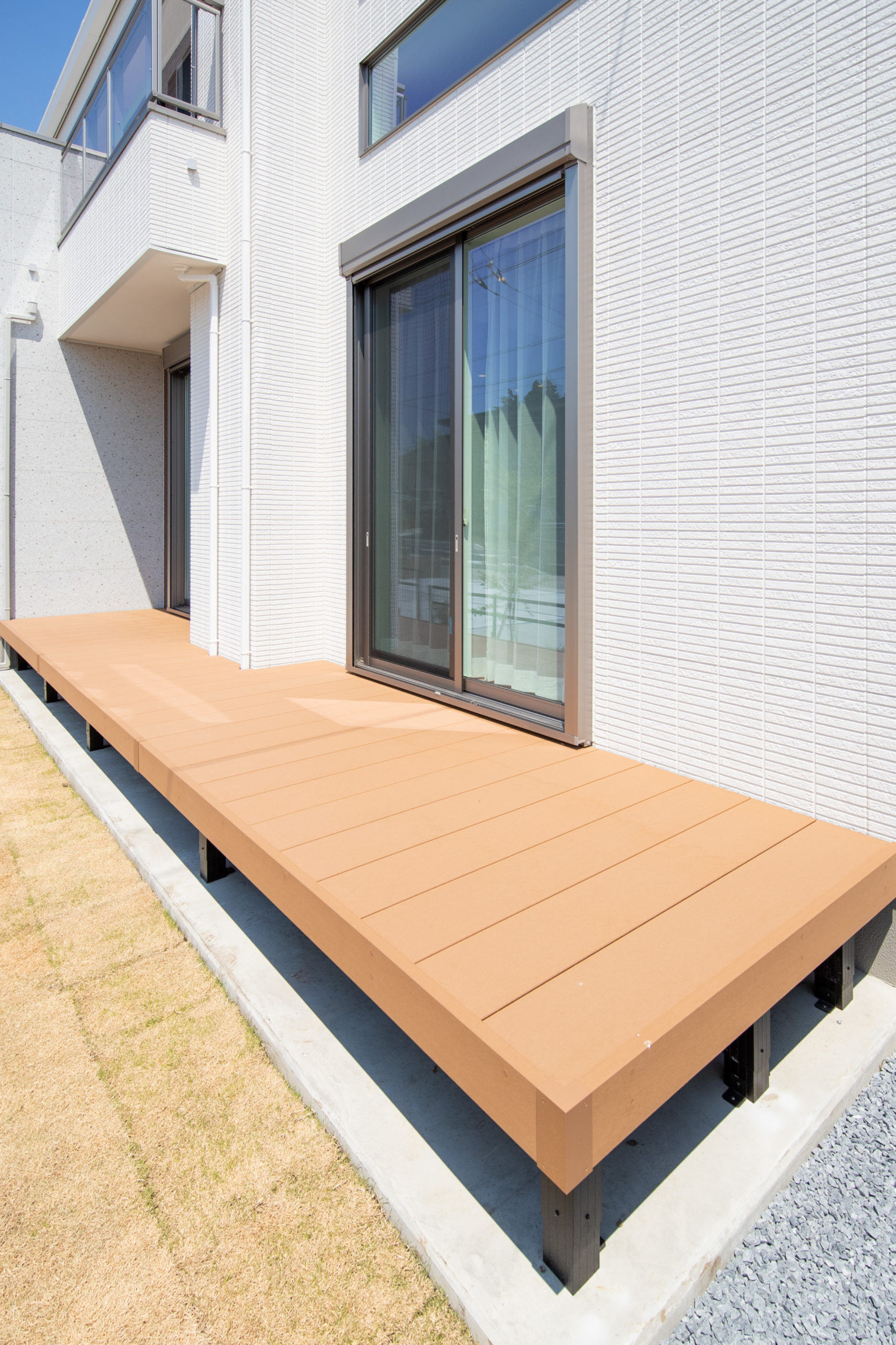 広々としたウッドデッキは、日向ぼっこをしながら読書を楽しんだり、お子様が庭で遊ぶ際の休憩場所として使うことができます。