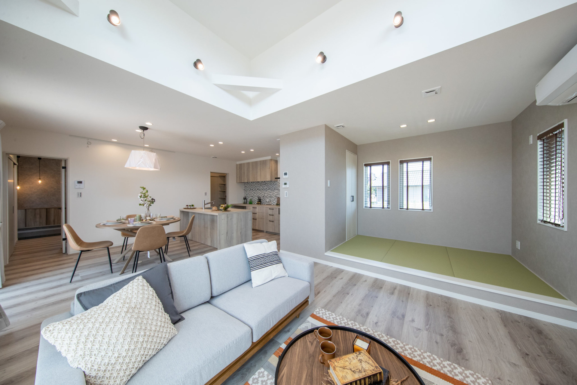 家族が集うリビングは、住まいに大空間と開放感を持たせることで、のびやかな心地よさを得ることができます。