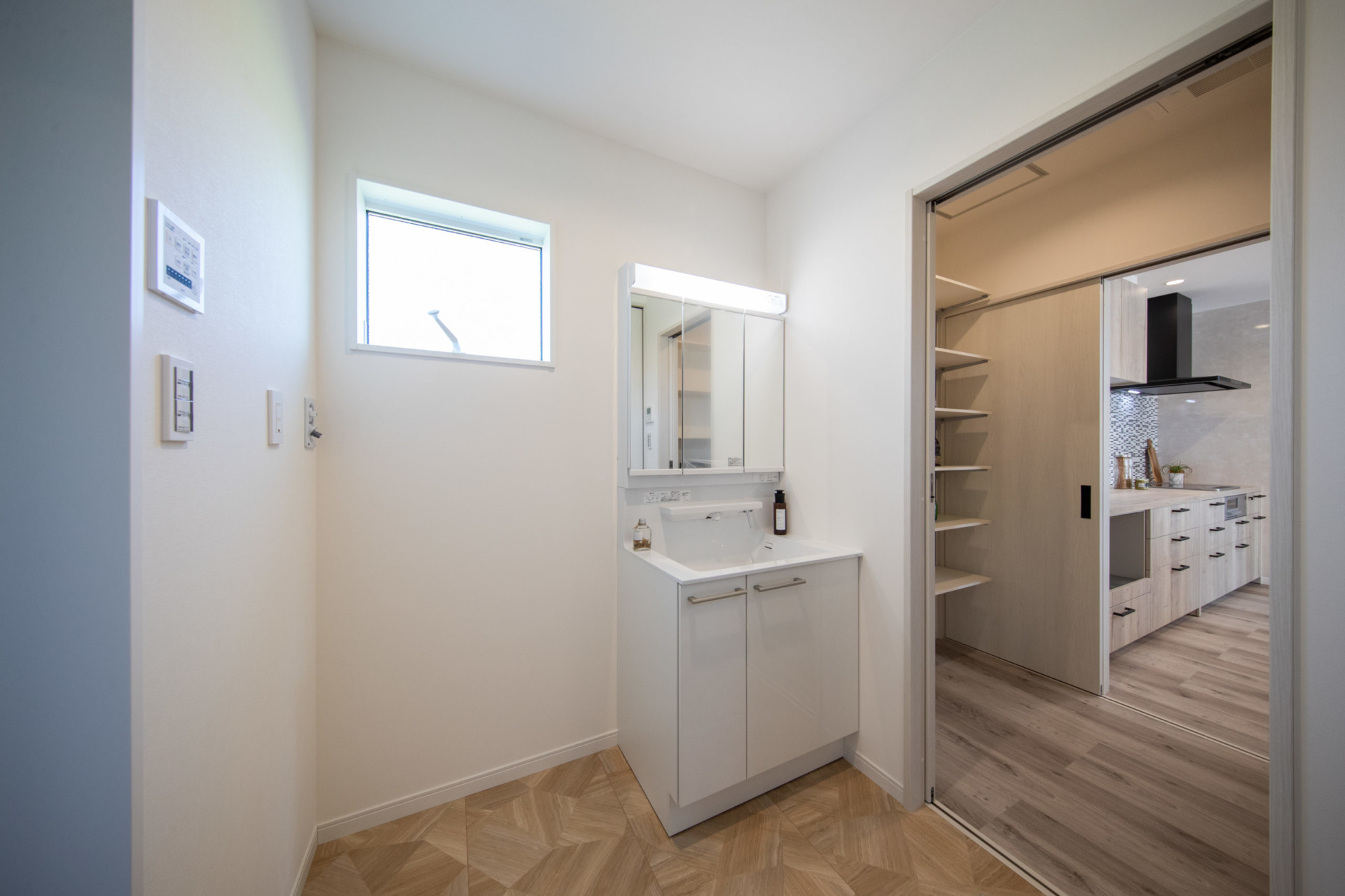 キッチン→パントリー→洗面所とつながり、家事動線がスムーズです。