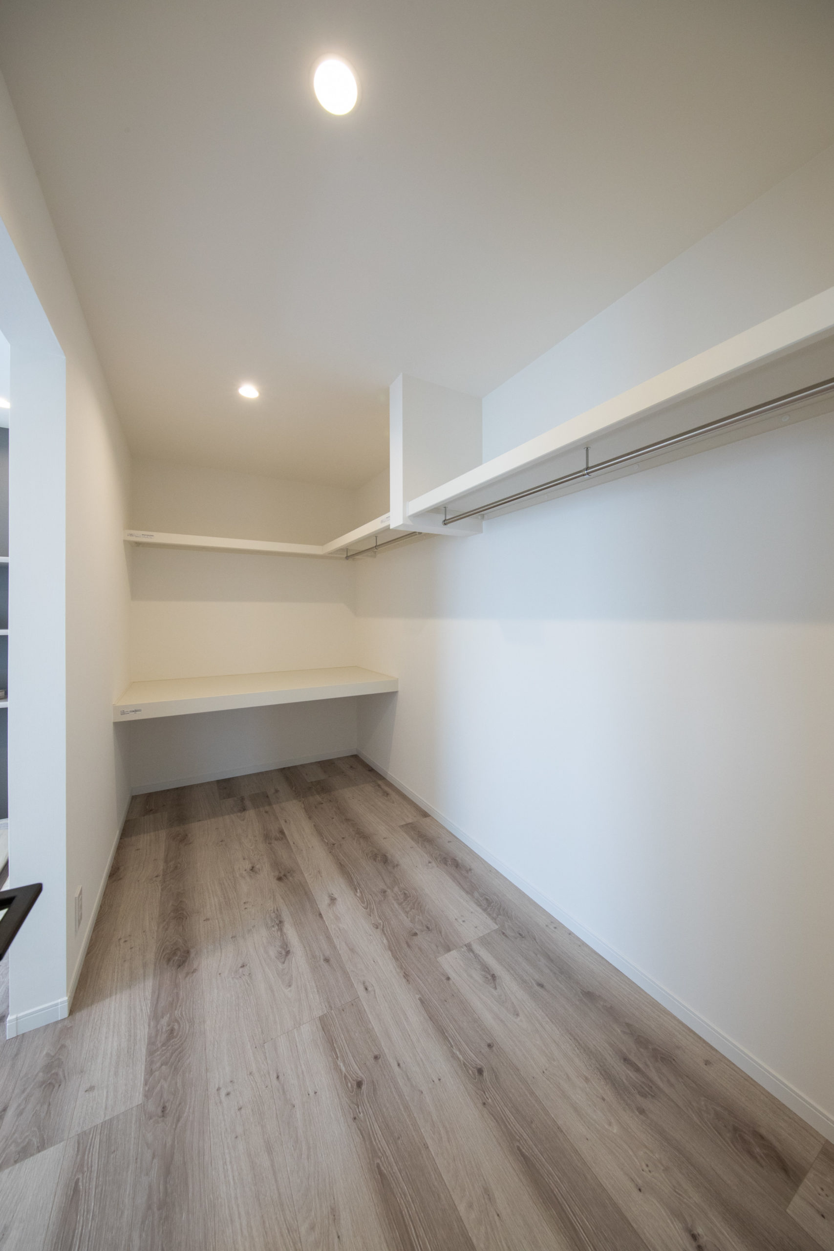 寝室内の4帖のクローゼットはパイプ収納のほかに押し入れ棚もついており、布団も収納可能です。