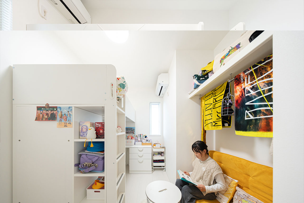 収納スペースにソファを置いてヌックのようにしたり、お気に入りのアーティストのグッズを飾ったり、自分なりの部屋づくりを楽しんでいる様子を見ると家を建てて良かったと改めて感じます。