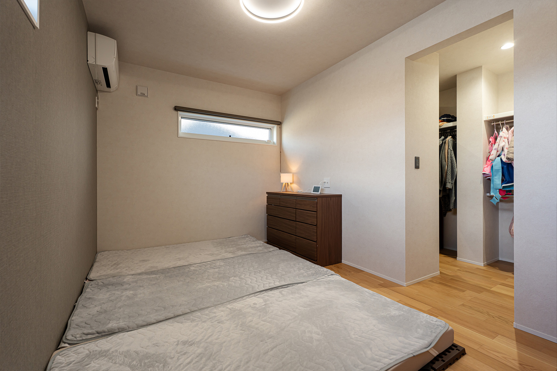 間取りの面でも、将来的な暮らしやすさを考慮して最初は平屋を希望していました。敷地の関係などから、子ども部屋は2階へ置くことにしましたが、私たちの寝室は1階へ置いて半平屋のスタイルに。