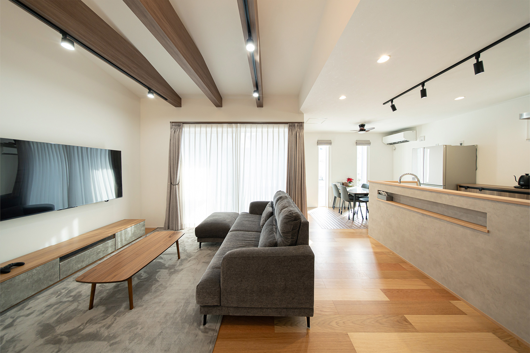 家族が集まるリビングは、みんなのお気に入りの空間です。ソファでくつろいだり、みんなでゲームをしたり、家で過ごす時間が楽しいので、子どもたちが「お家に居たい」と言うようになって外出する機会が減りました。